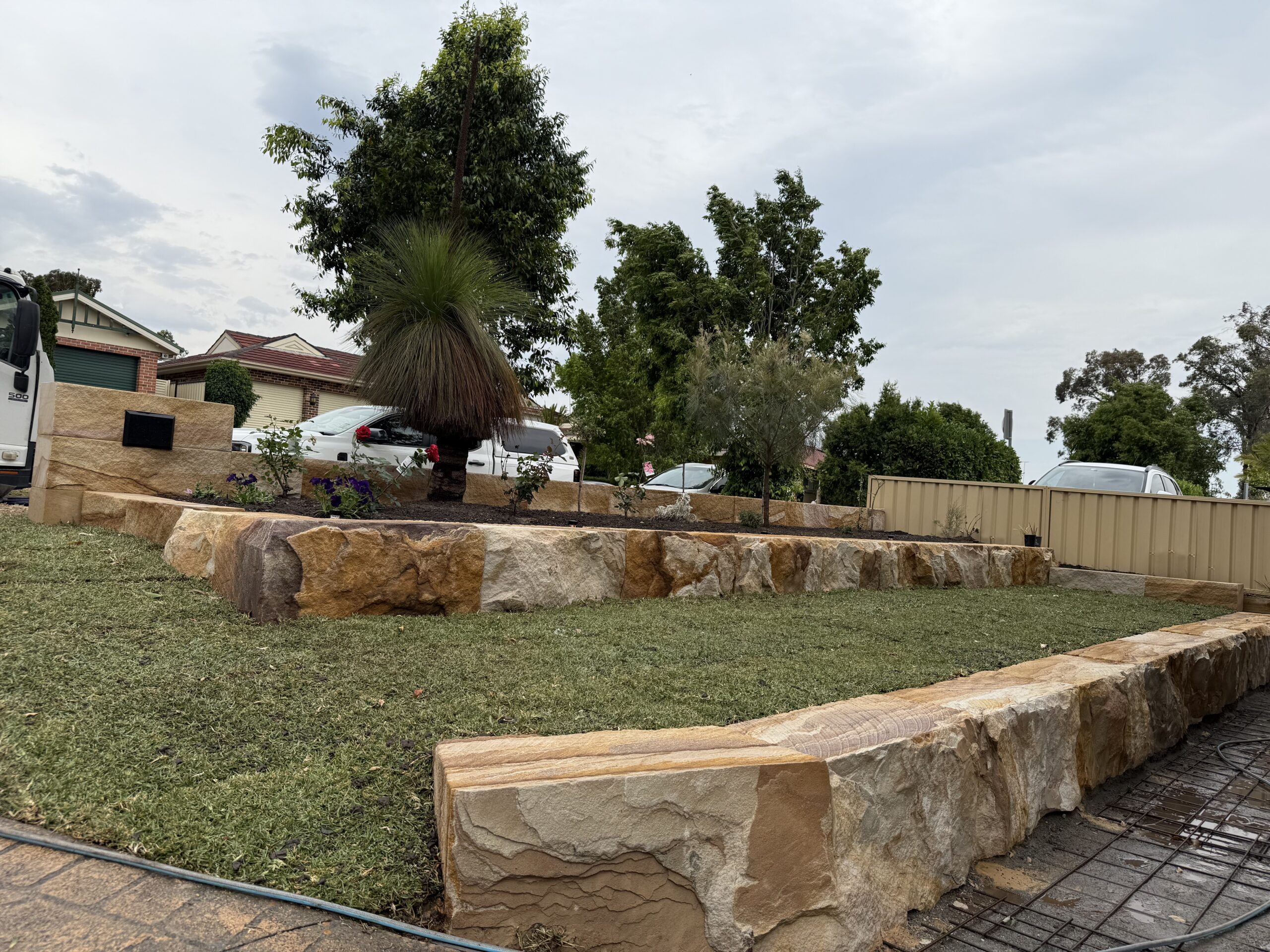 Perfect for stabilising slopes, creating terraces, or adding definition to your property. Our sandstone retaining walls are built tough to handle the Aussie climate and stand the test of time. We use 1m and 2m sandstone blocks, expertly placed for strength and a natural look.